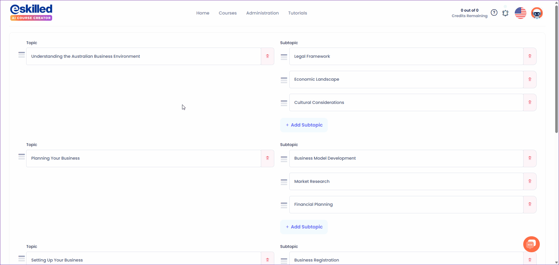 After successfully using AI to generate your course content topics, you still have the flexibility to personalise them according to your preferences using the 'Edit Topics' feature of the AI Course Creator.