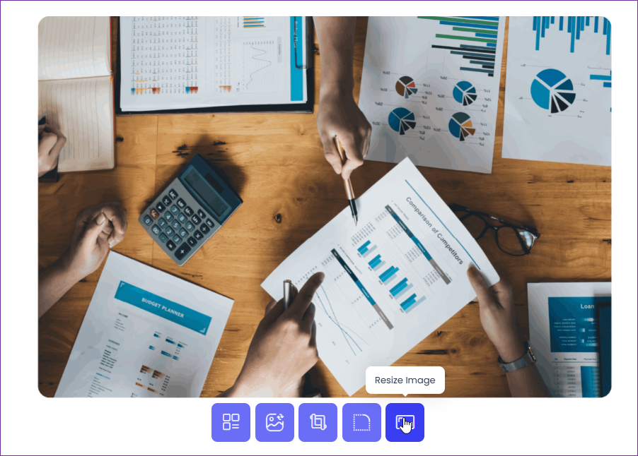 ii. Click on the 'resize' button to display the options for resizing uploaded image.