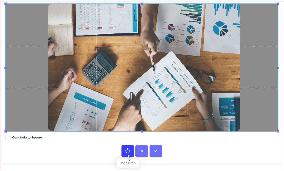 ii. Clicking the 'Undo Crop' button will reset the crop box to match the image's original dimension.