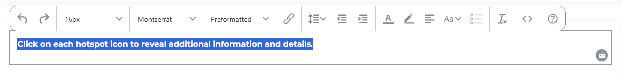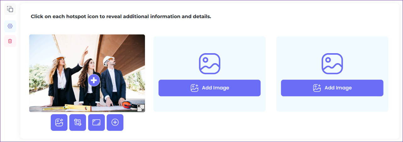 - To add another hotspot, simply click on the '+' button. A text input field is available for each hotspot, allowing users to add descriptive text or instructions related to it.