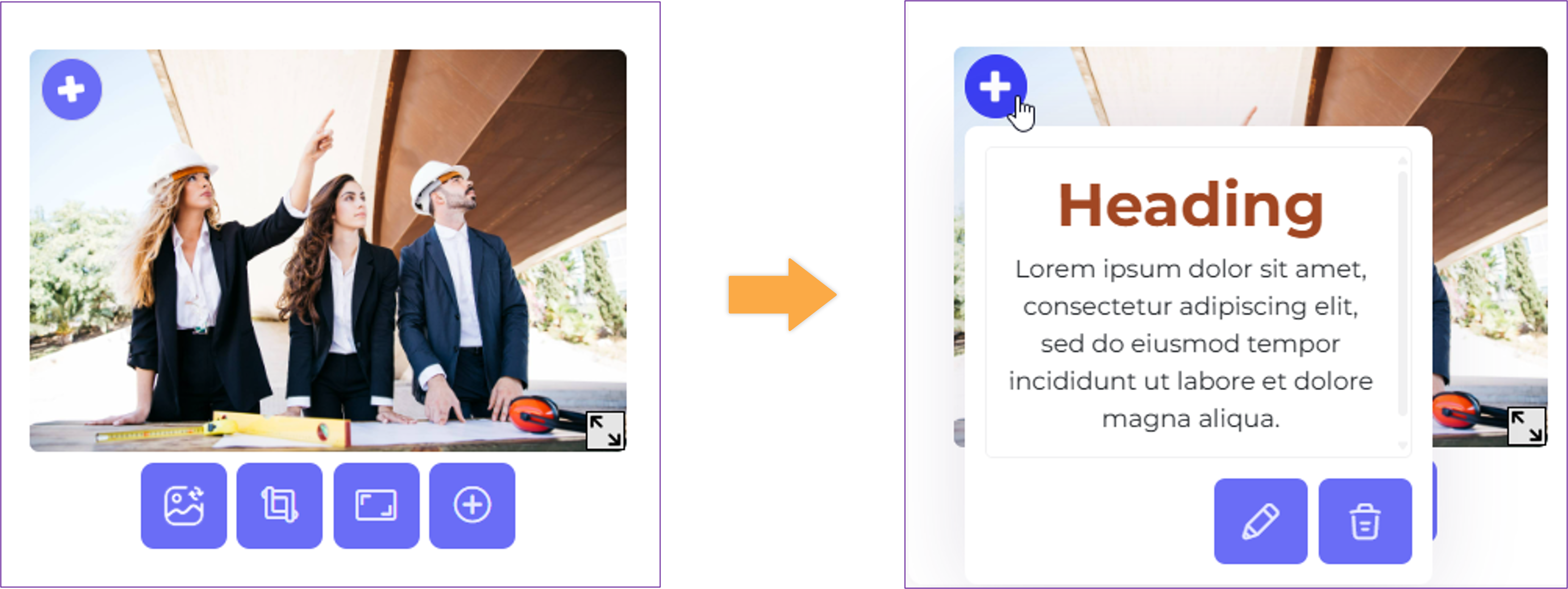 - Heading with Paragraph — Add a content block with both a heading and a paragraph placeholder text.