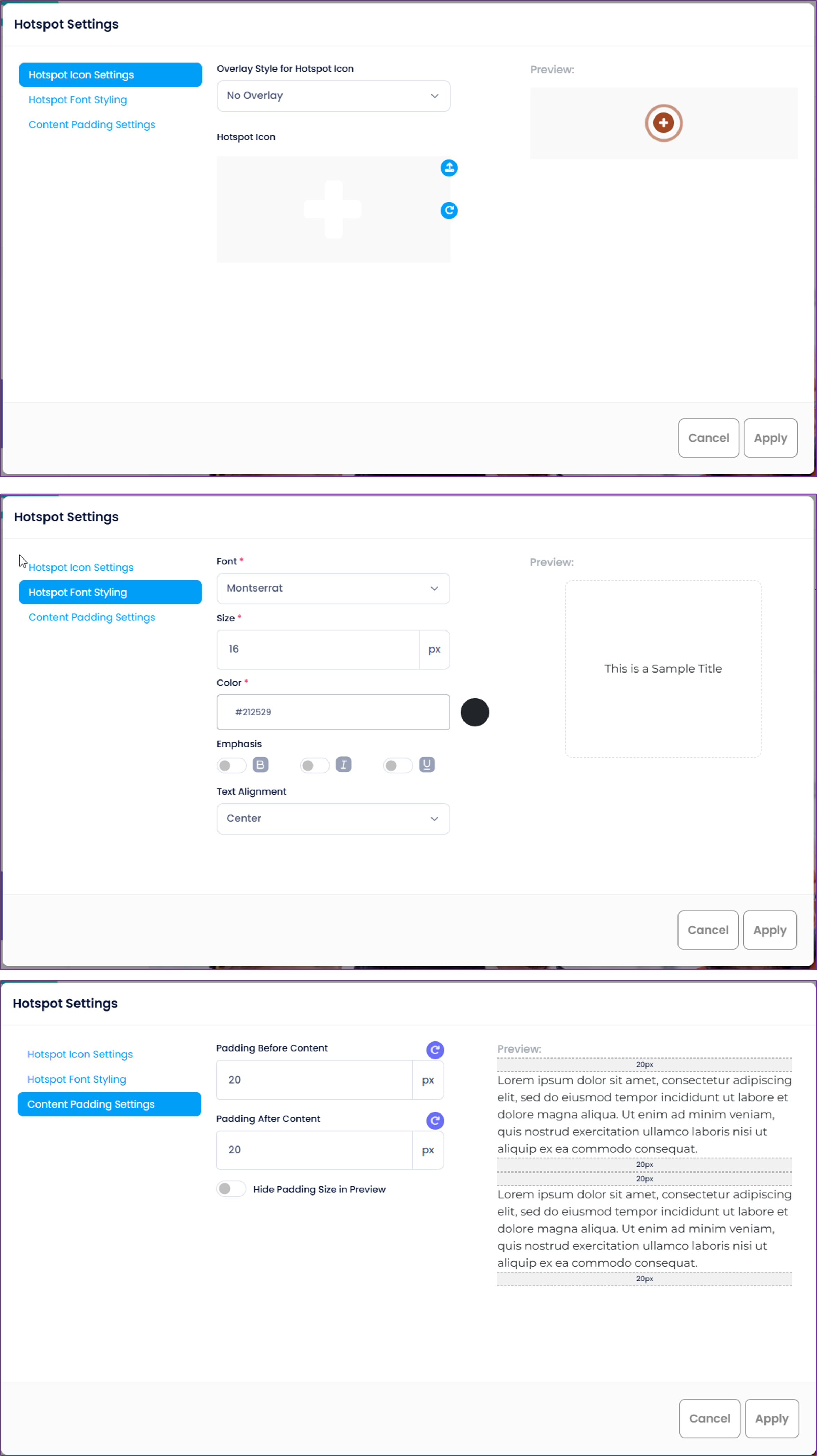 - If you upload a hotspot icon here, the changes will apply only to that specific hotspot.