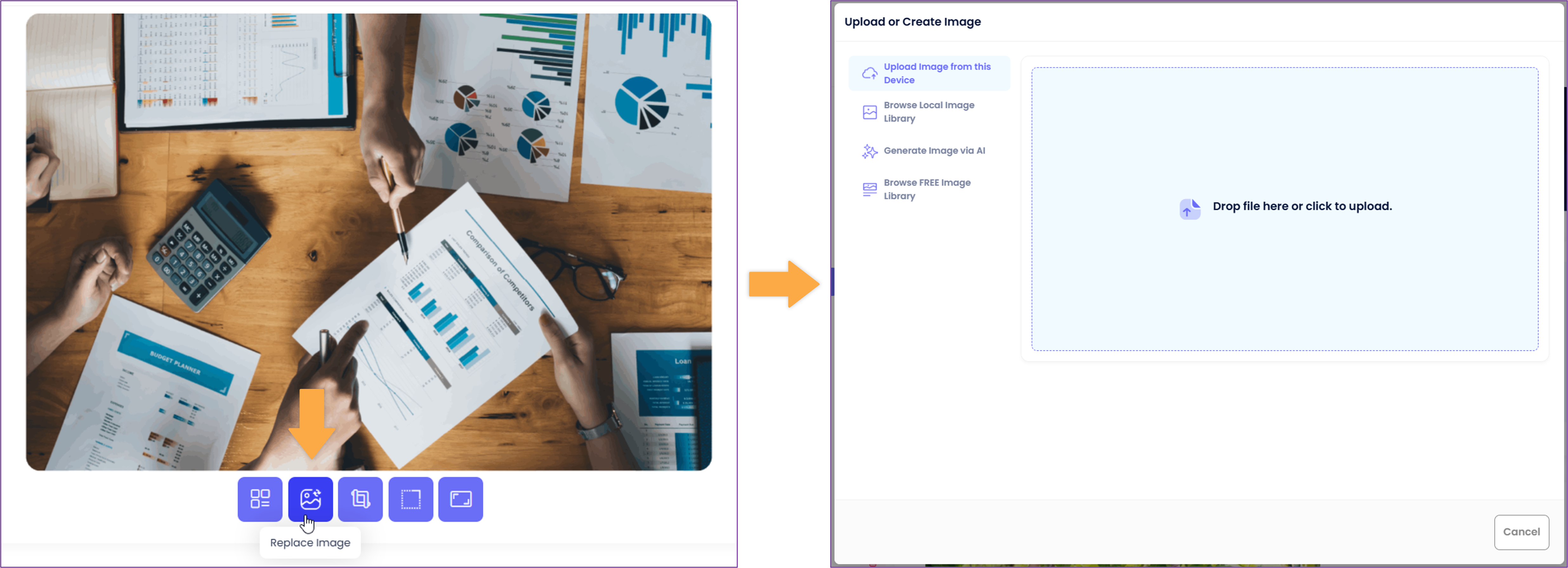 a. Upload Image from this DeviceThis option allows you to select and upload an image file that is stored on your computer or device. By choosing this, you can upload images by either dropping the file into the box or clicking the box to open your device's file explorer to select an image.