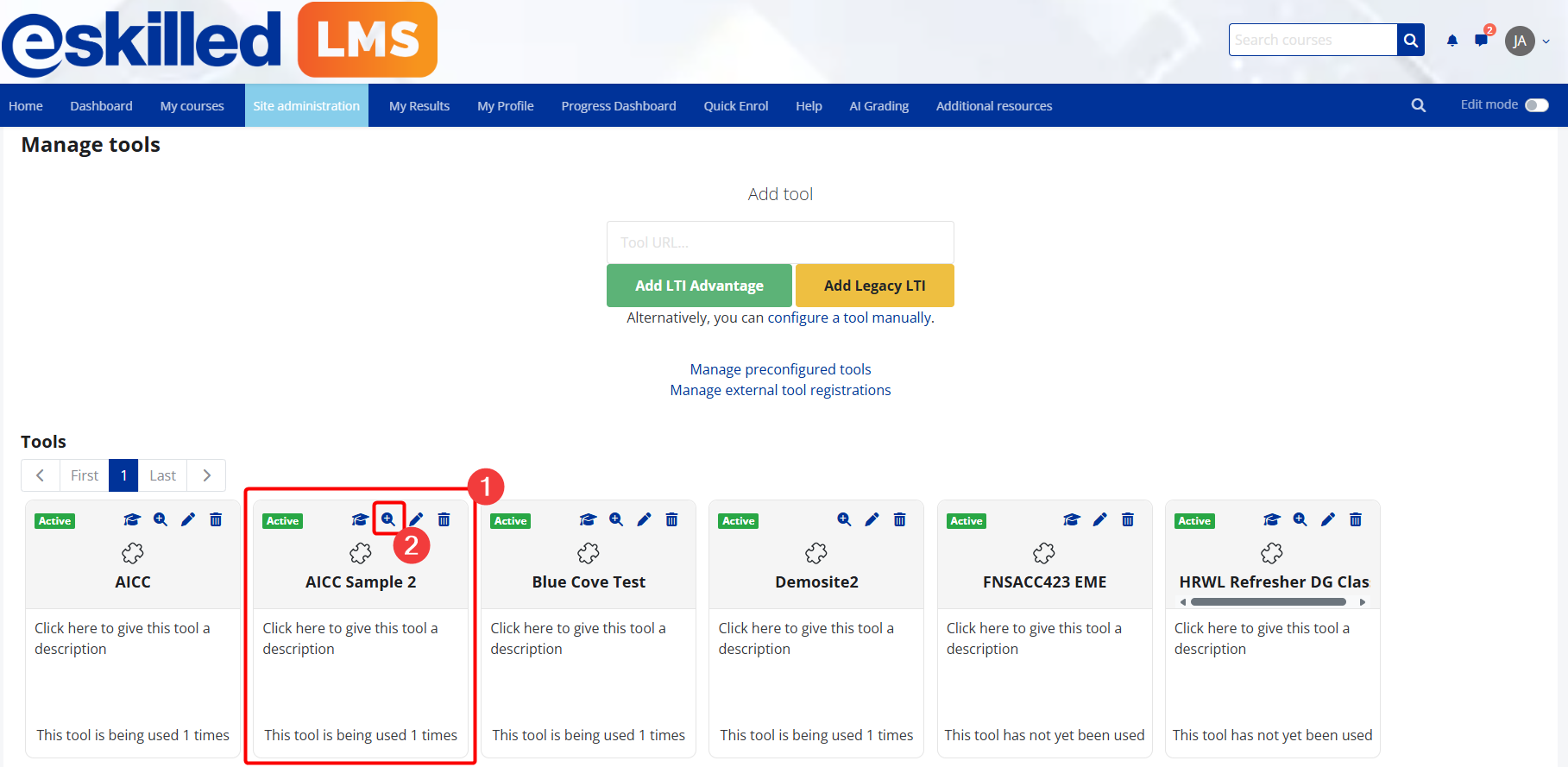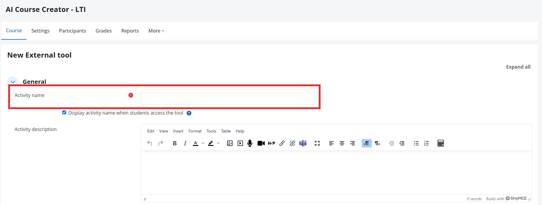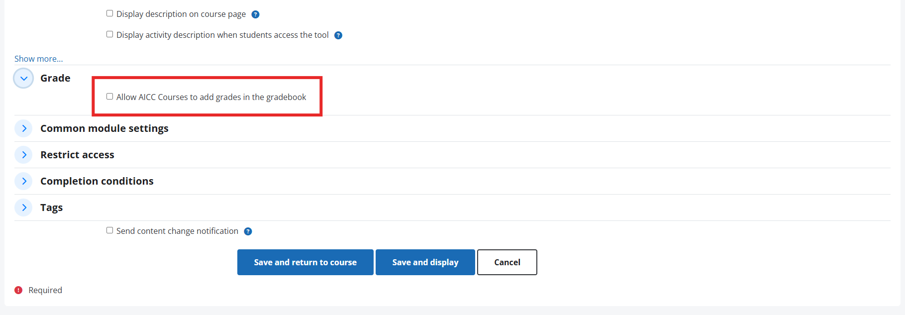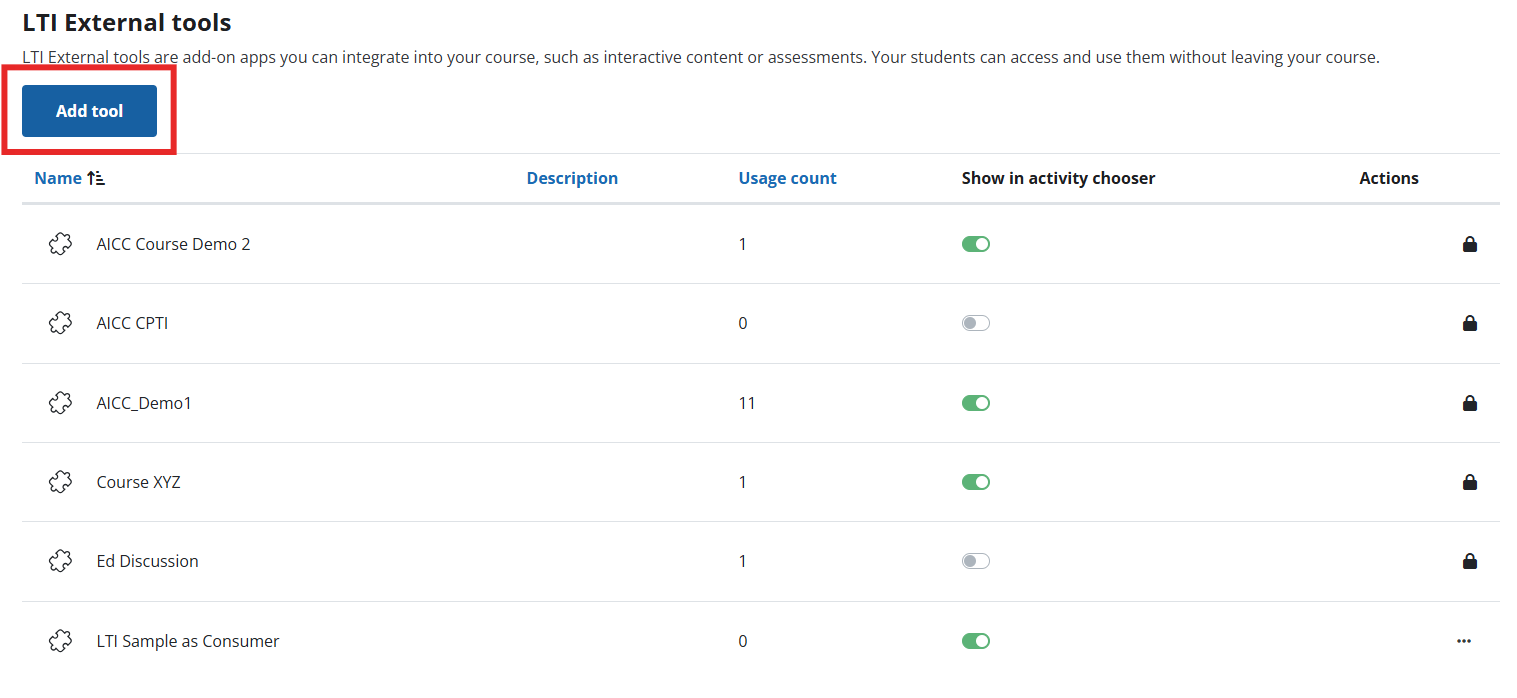 Tool name – Add your preferred tool name (e.g. AICC Courses).