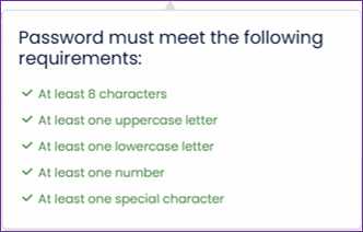 - Comply with the checklist of password security rules that will be displayed below the field.